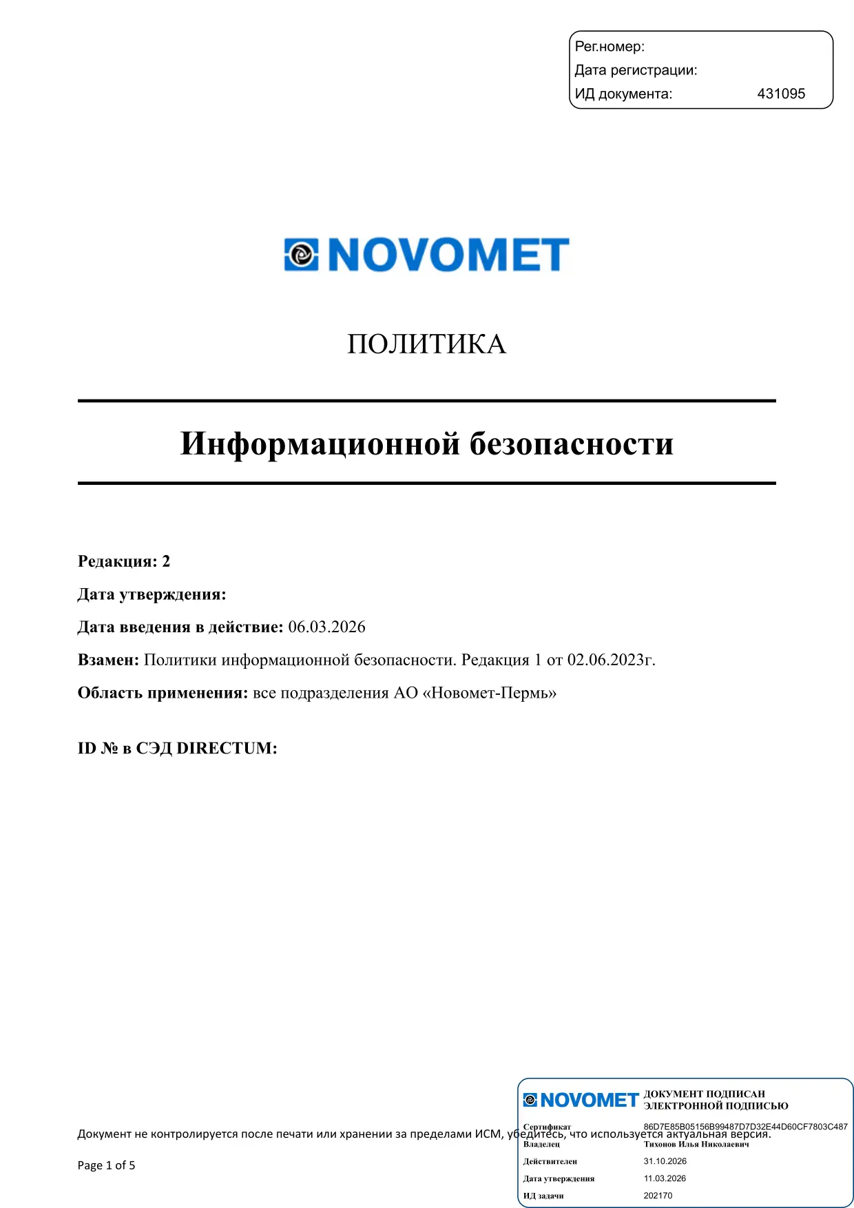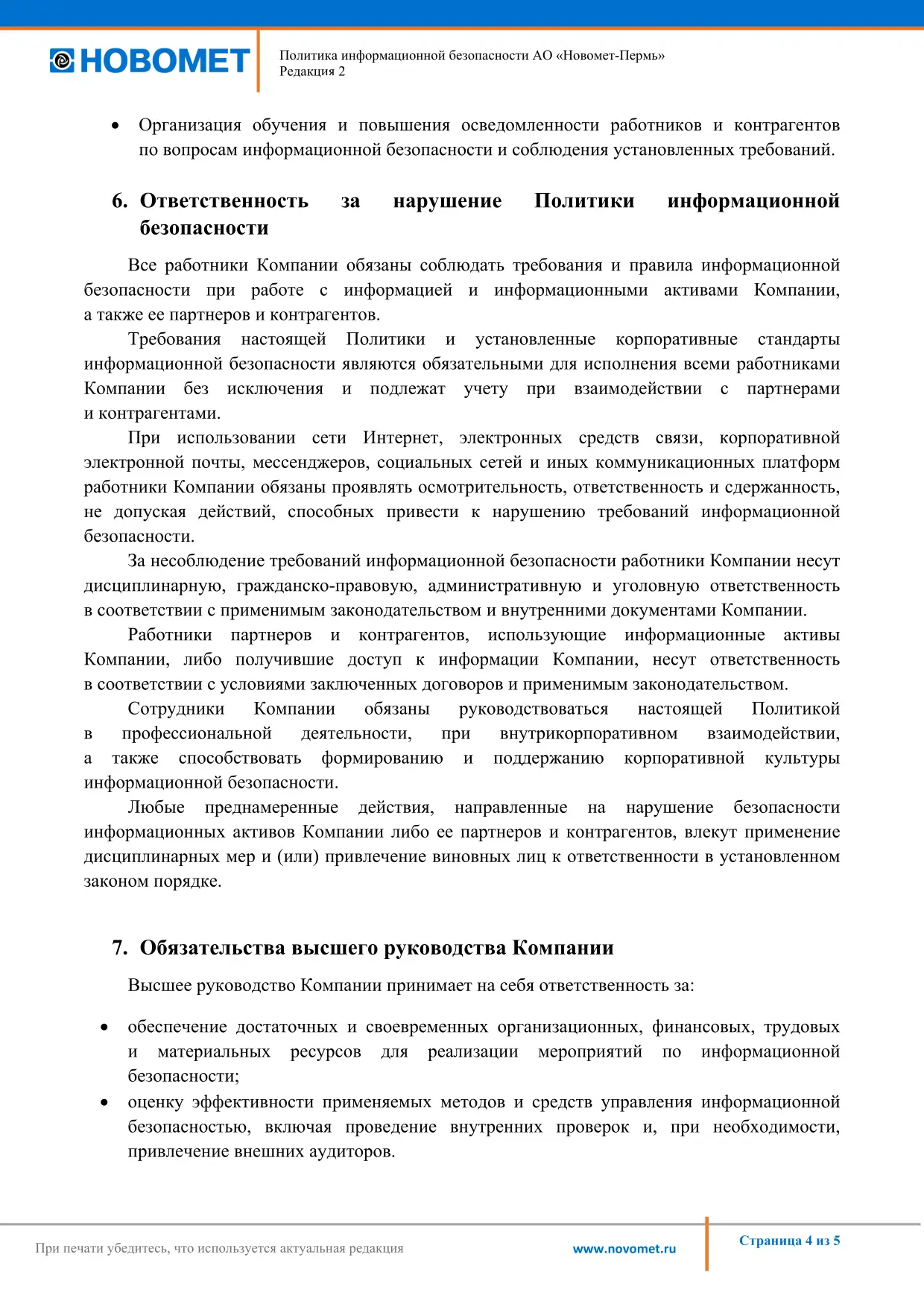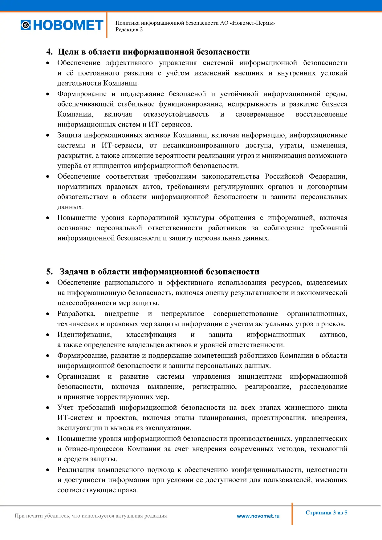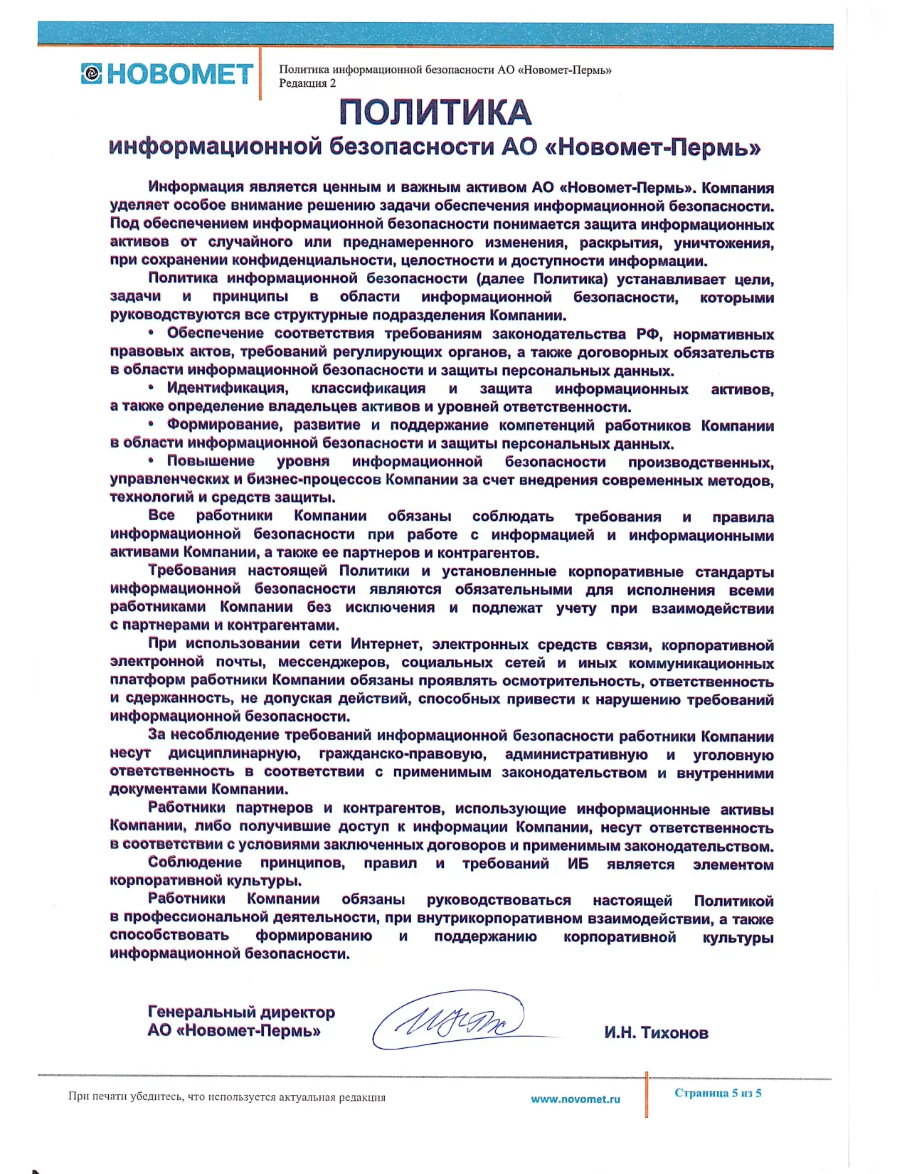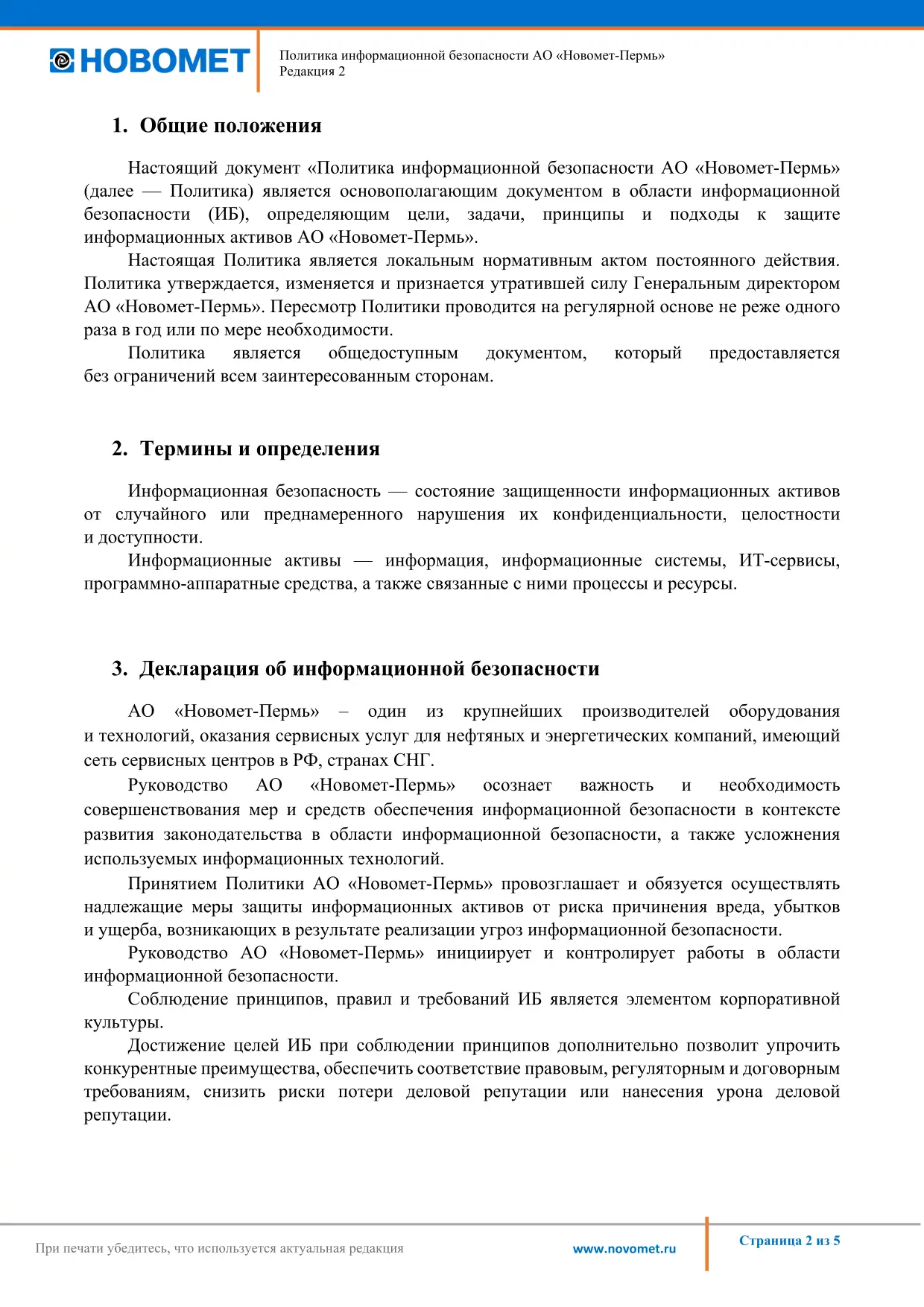 Политика АО «Новомет-Пермь» в области ОТиОЗ и экологического менеджмента